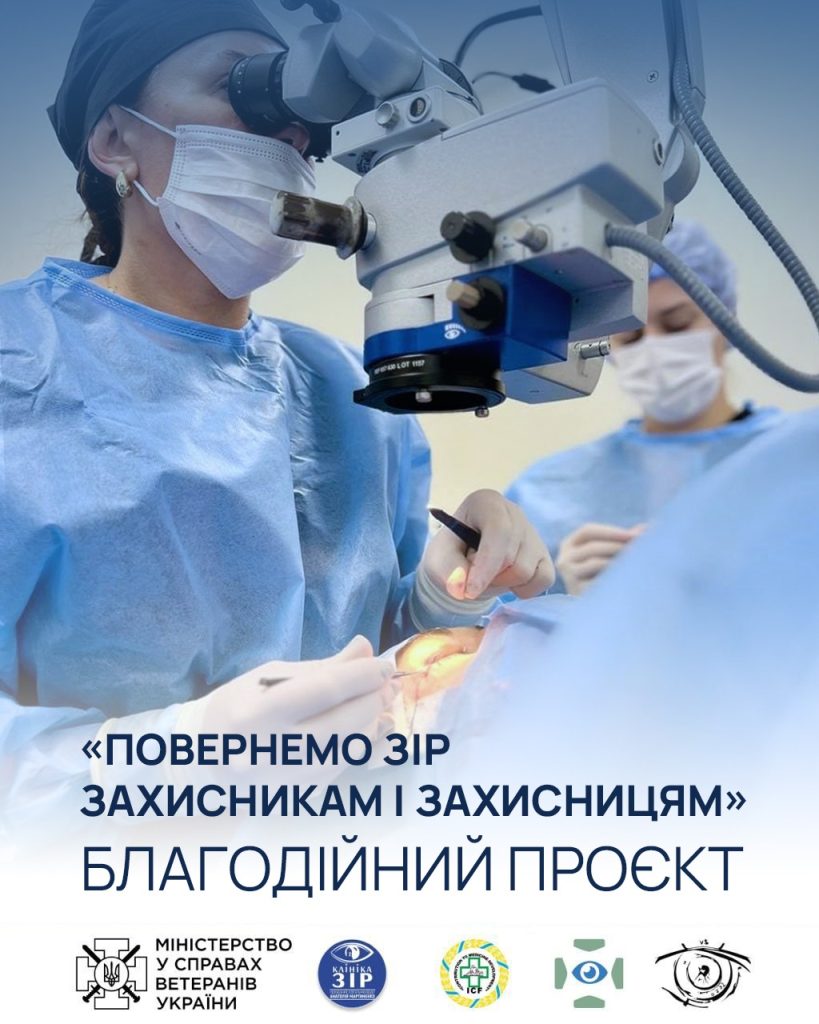 “Повернемо зір Захисникам та Захисницям” – спільний проєкт Міністерства у справах ветеранів України, МБФ “Сприяння розвитку медицини” та клініки “Мікрохірургія ока Василя Шевчика”.