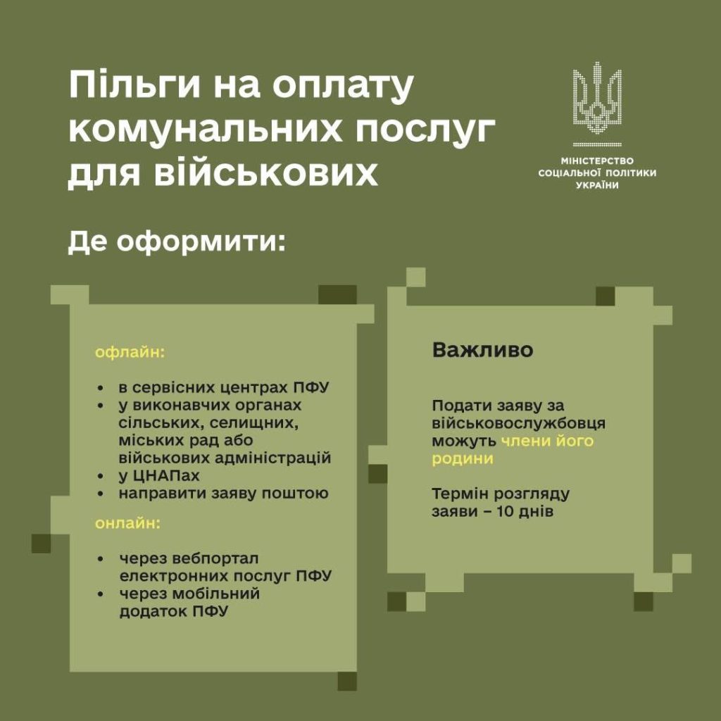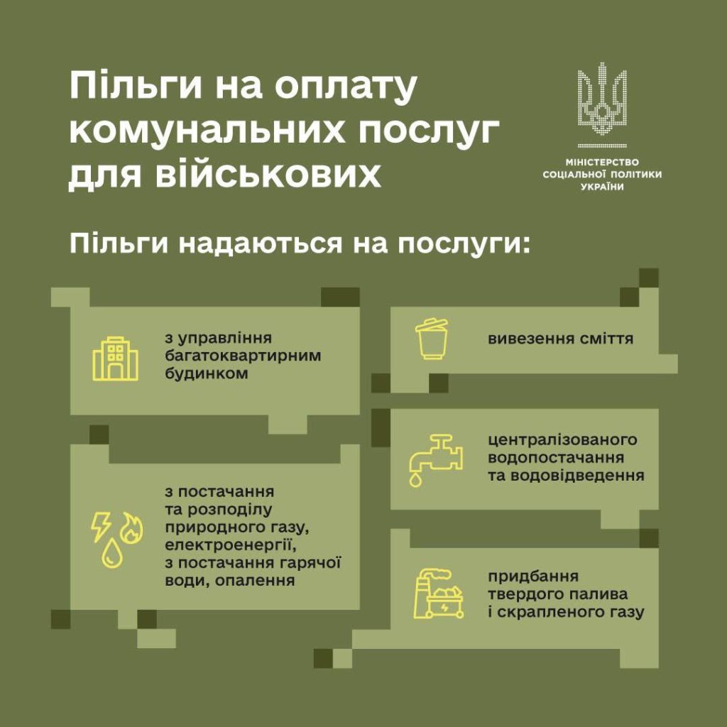 ℹ️ Пільги поширюються на оплату послуг з управління будинком, постачання газу, електроенергії, води, опалення, вивезення сміття, а також на придбання твердого палива та скрапленого газу.